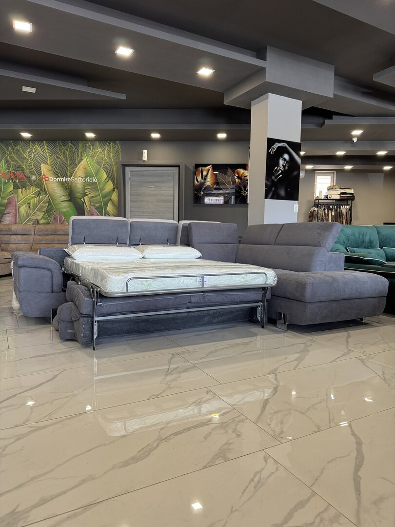 Divano letto angolare con rete elettrosaldata e materasso H 14 cm