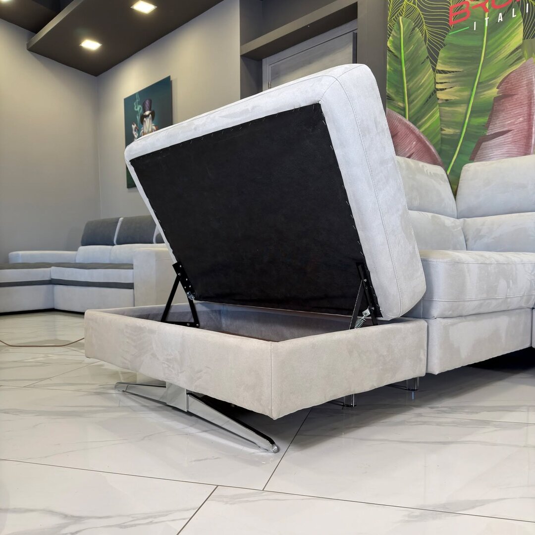 Divano angolare con carrello funzione letto e pouf contenitore
