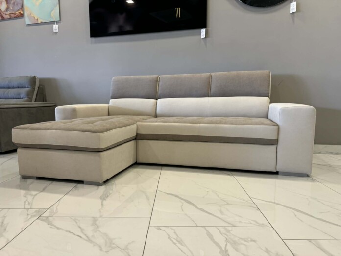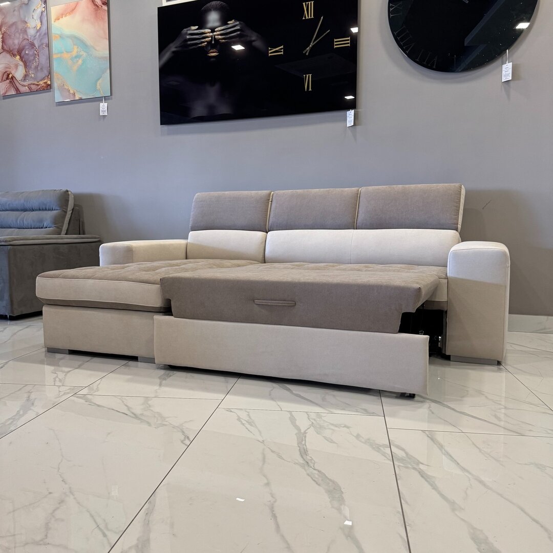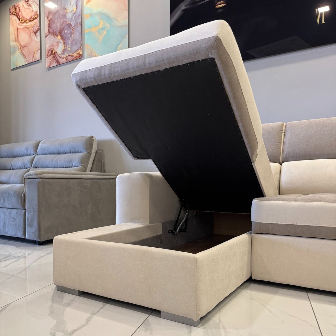 Divano con carrello funzione letto e penisola contenitore intercambiabile