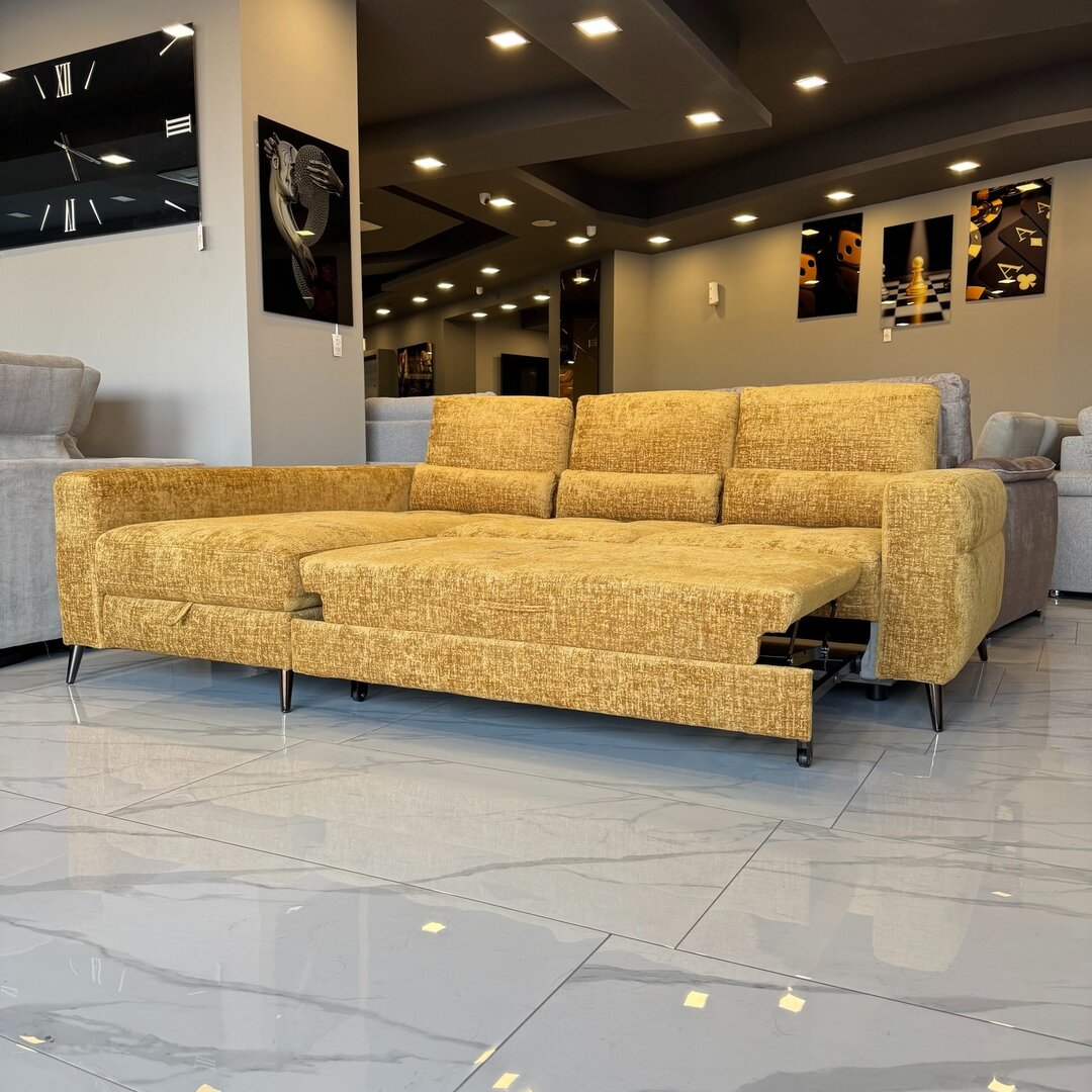 Il meccanismo traslante dello schienale permette di trasformare il divano in un comodo letto